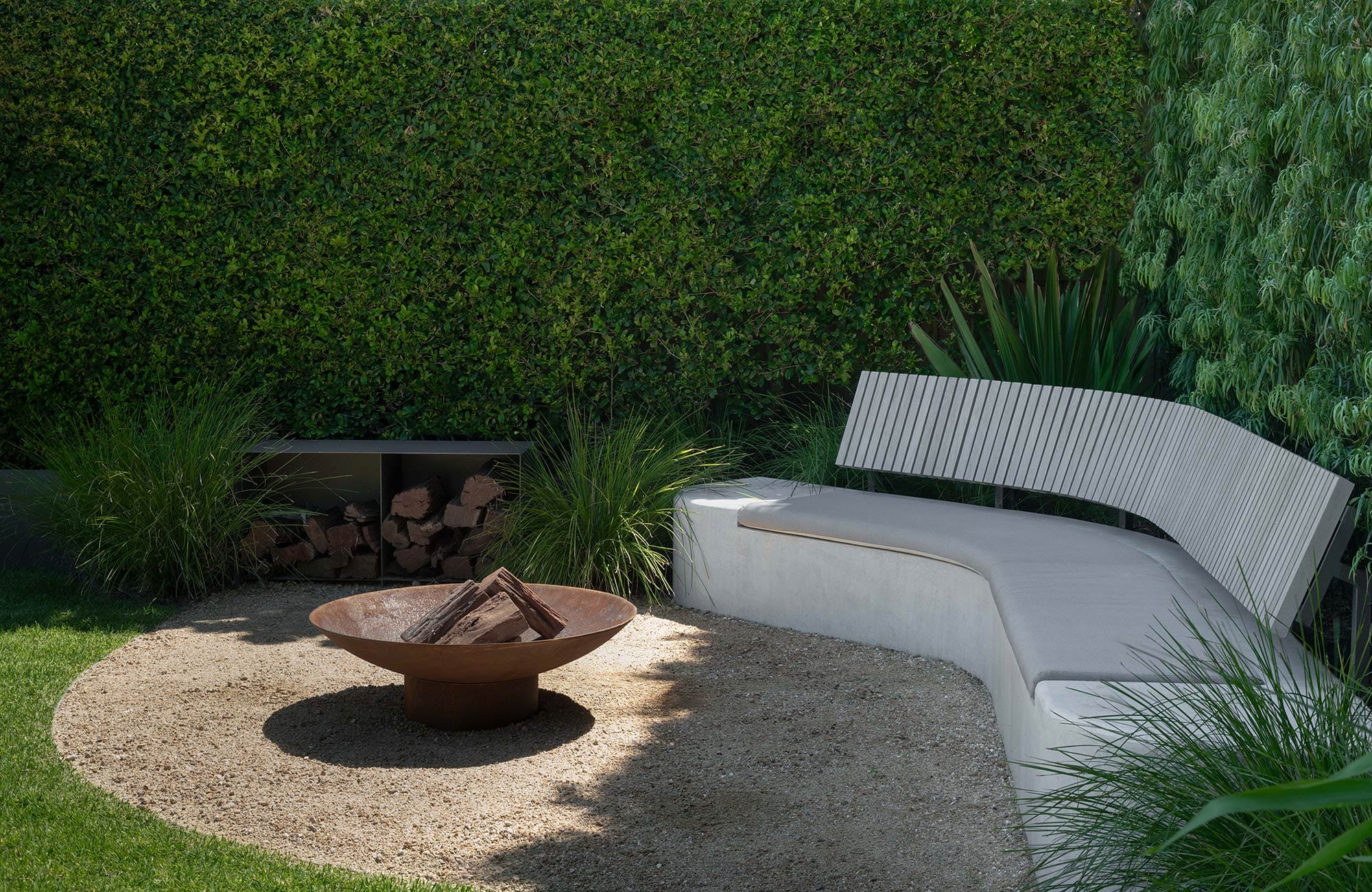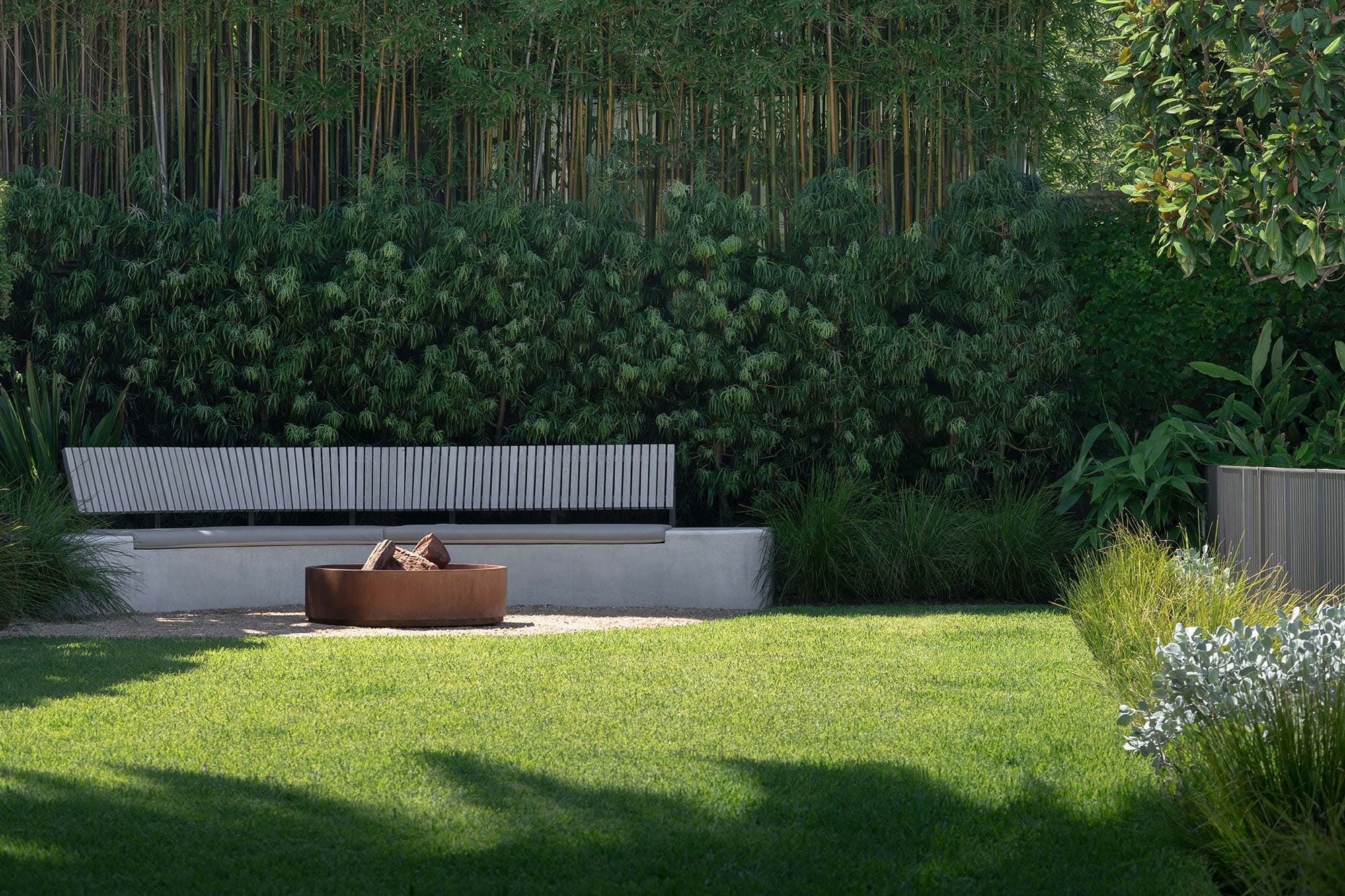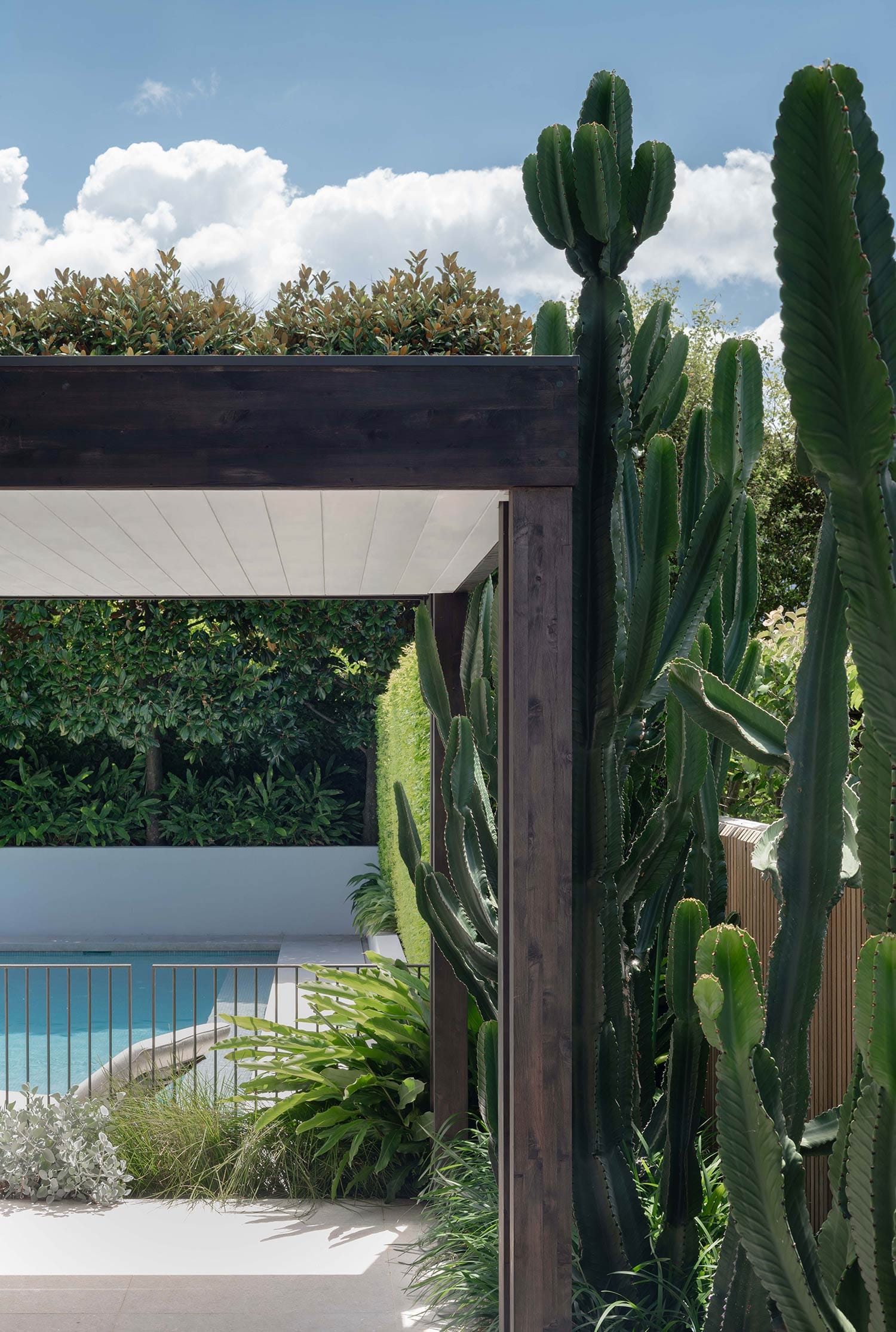 The rear garden was designed around clean, simple lines to support a seamless indoor–outdoor lifestyle. A generous pergola anchors the space, while an integrated planter and BBQ structure, supporting an existing mature Phoenix Palm, draws the eye outward, creating a welcoming environment for both everyday use and entertaining.